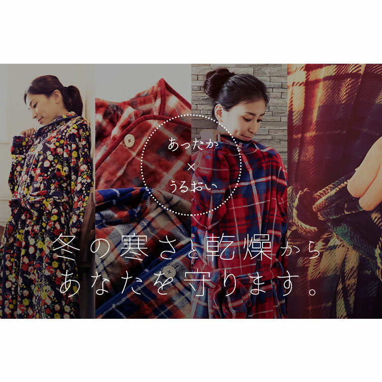 (検索用:ガウン・ルームウェア・ブランケット・バスローブ・部屋着・寝間着・冬・あったか・洗える・チェック柄・花柄・FDRM-054【fondan】【D】[R5])★