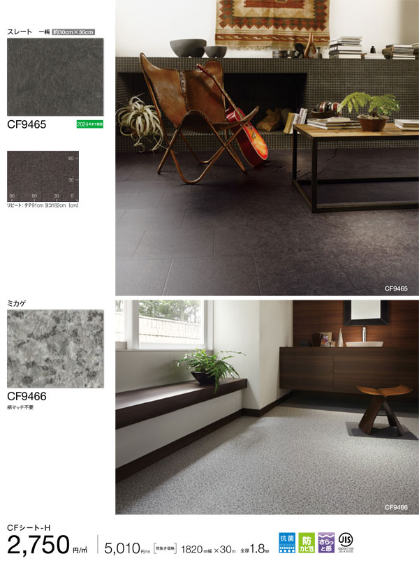 東リのクッションフロア CF9465,CF9466の販売 東リのシートカタログ【シートコレクション2018-2022】掲載商品のクッションフロア( CFシート-H)です。