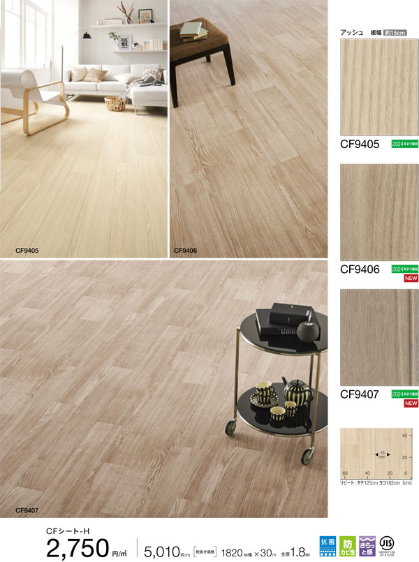 東リのクッションフロア CF9405,CF9406,CF9407の販売 東リのシートカタログ【シートコレクション2018-2022】掲載商品のクッションフロア( CFシート-H)です。