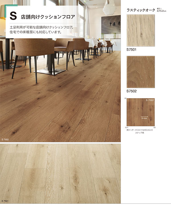 シンコールフロア ラスティックオーク(S7501,S7502)の販売 こちらのページではシンコール製 店舗・業務用クッションフロアのカタログ、シンコールフロア2020-2021ラスティックオーク(S7501,S7502)がお買い上げ頂けます。