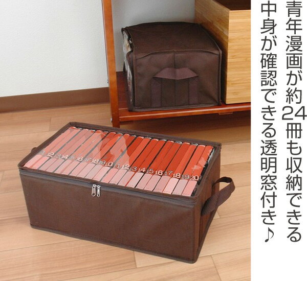 収納ボックス コミックサイズ 幅35×奥行20×高さ14cm メディア収納 布製 ( 収納ケース 収納 コミック収納 漫画 コミック 透明窓付き 布 不織布 ファブリック 新書 少年コミック 漫画 ソフト 仕切付き )