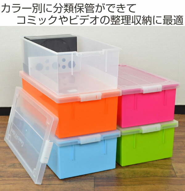 DVD・コミック・ビデオケース バックル式 収納ケース 幅43×奥行23.3×高さ14.8cm ( 収納ボックス 収納 DVD用 コミック用 ビデオ用 ケース 積み重ね スタッキング フタ付き 漫画 DVD コミック VHS ビデオ ケース ボックス )