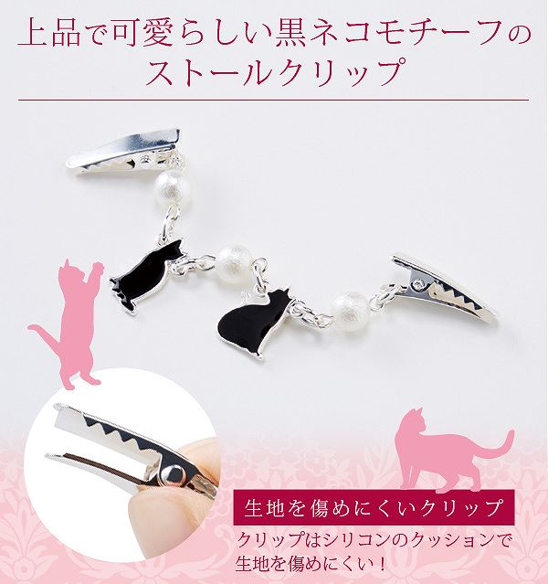 ストールクリップ 黒ネコ 〈 クリップ ストール ねこ スカーフ マフラー ズレ落ち防止 アクセント コーディネート 〉FM