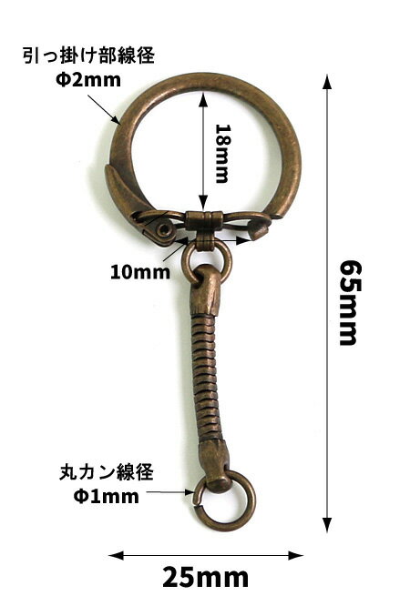 入数 : 50個サイズ: 全長6.5cm、φ25mm鍵などをまとめて束ねておくための道具。